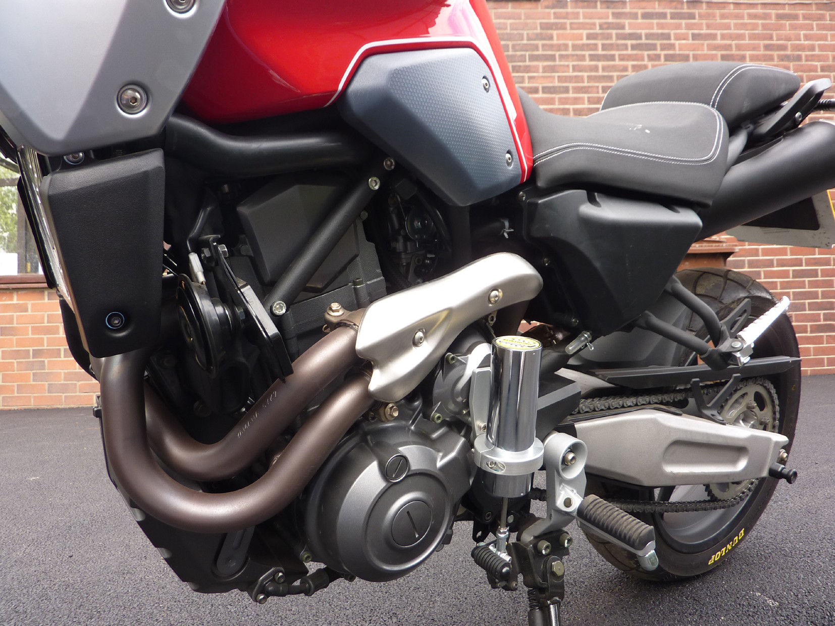 NB. Never secure a prosthetic leg to a motorcycle in such a way that it cannot naturally separate from the bike in the event of an accident. Being physically connected to a heavy motorcycle after impact, or when the bike has been dropped, could greatly increase the potential for serious injury!