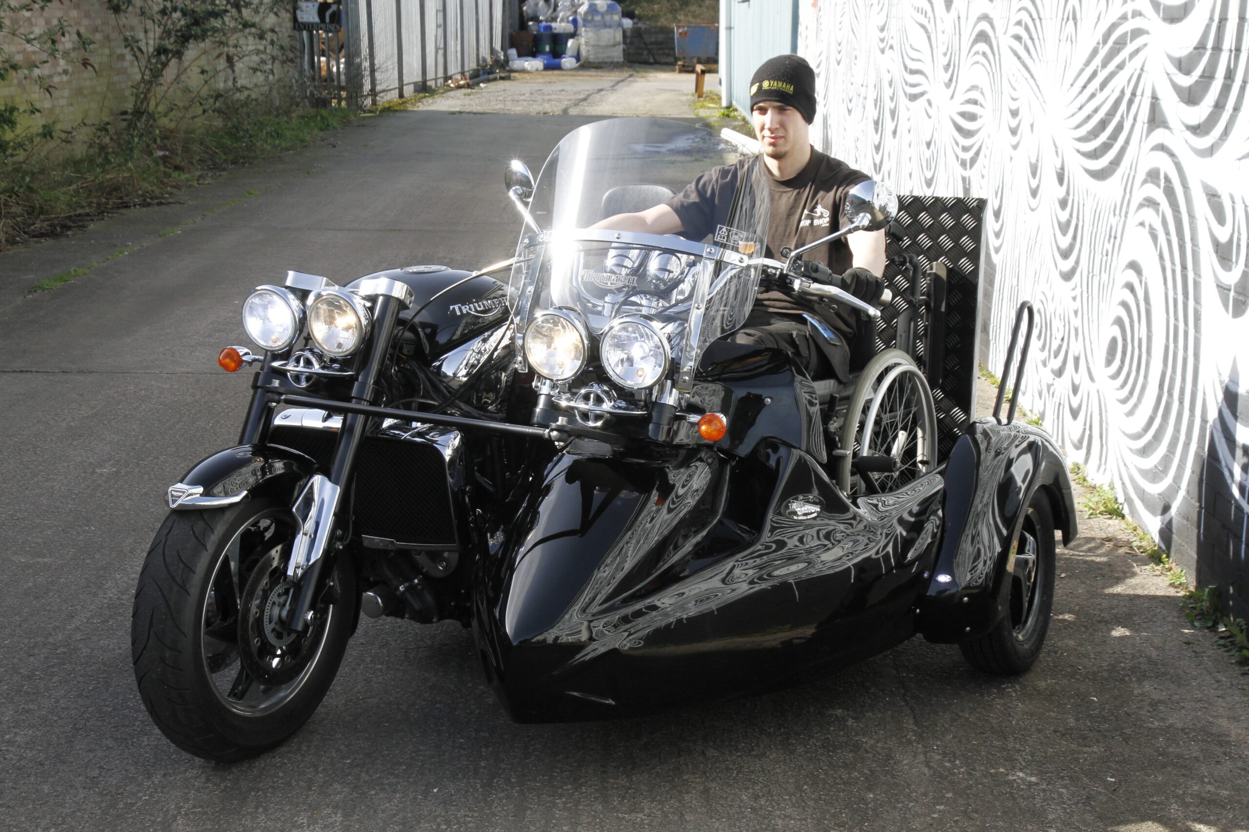 - A wheelchair accessible sidecar fitted with handlebars with full hand controls and a remote steering adaptation.