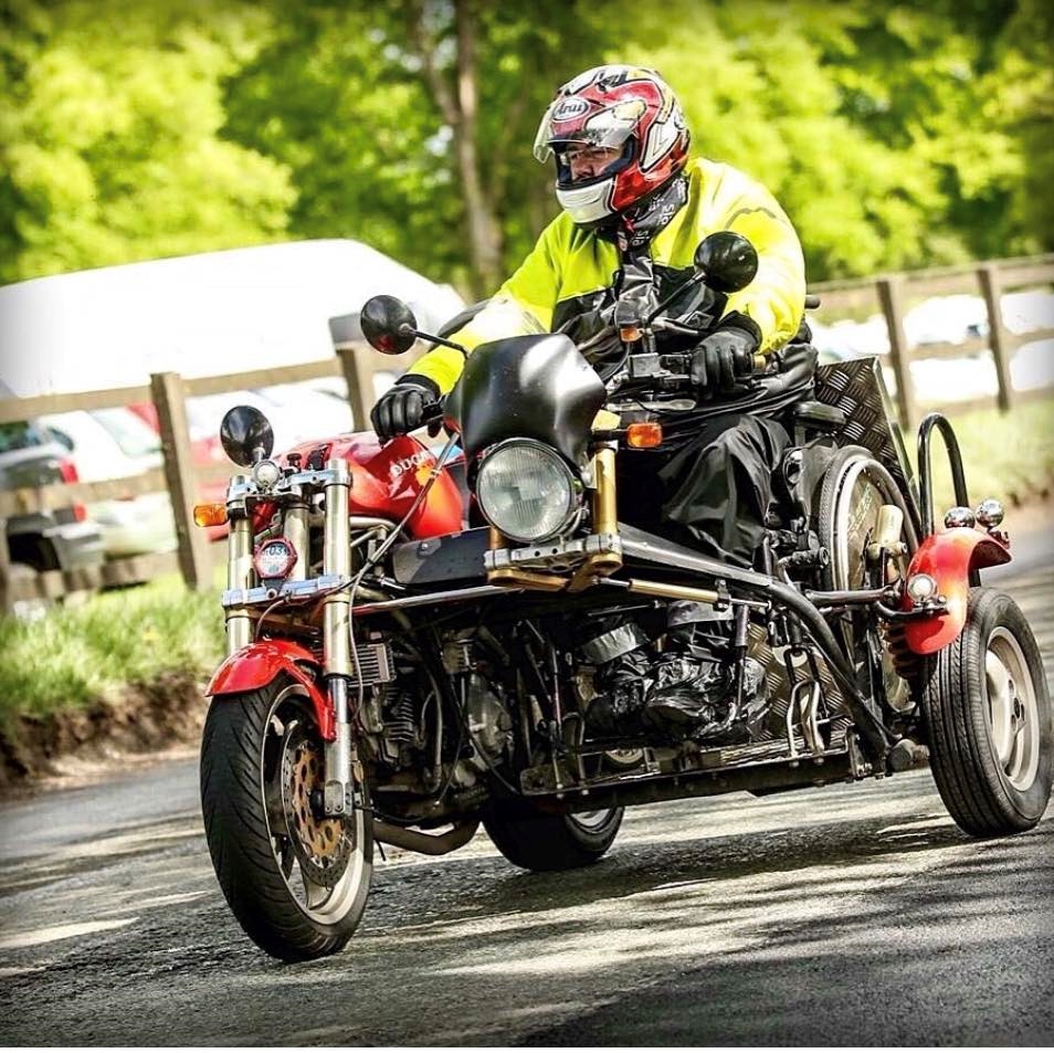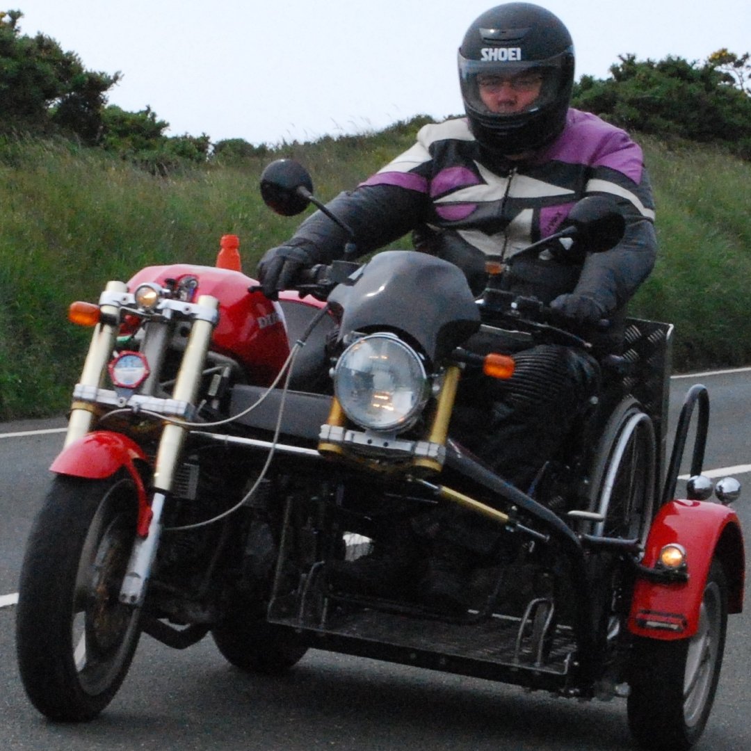 Mike has travelled extensively around the UK and Europe in his own Chair Rider outfit, which has enjoyed several motorcycles as its power-mill over the years and is currently powered by a Ducati M900 ‘Monster’ motorcycle.