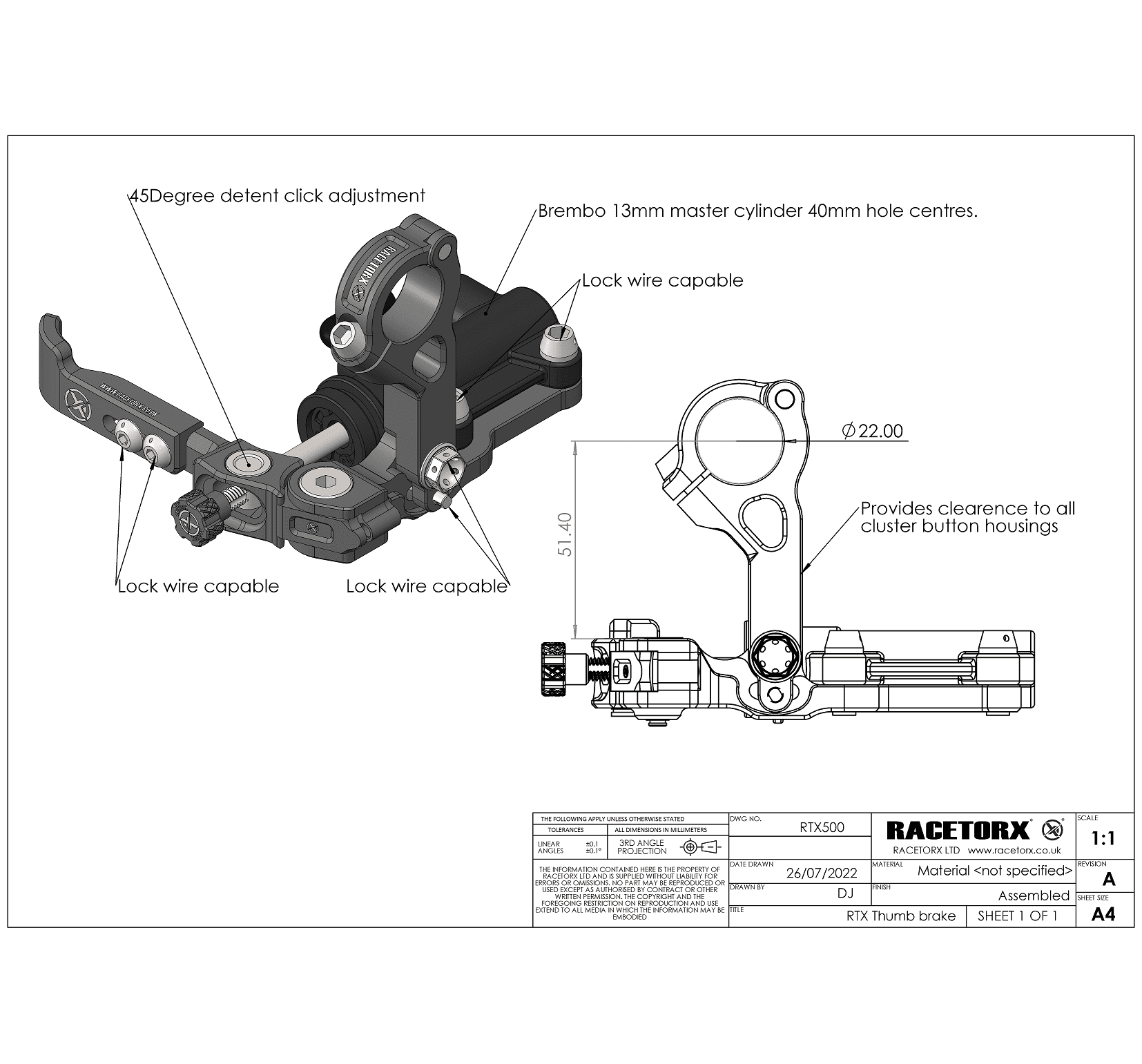 - Right Hand Thumb Operated Brake Lever